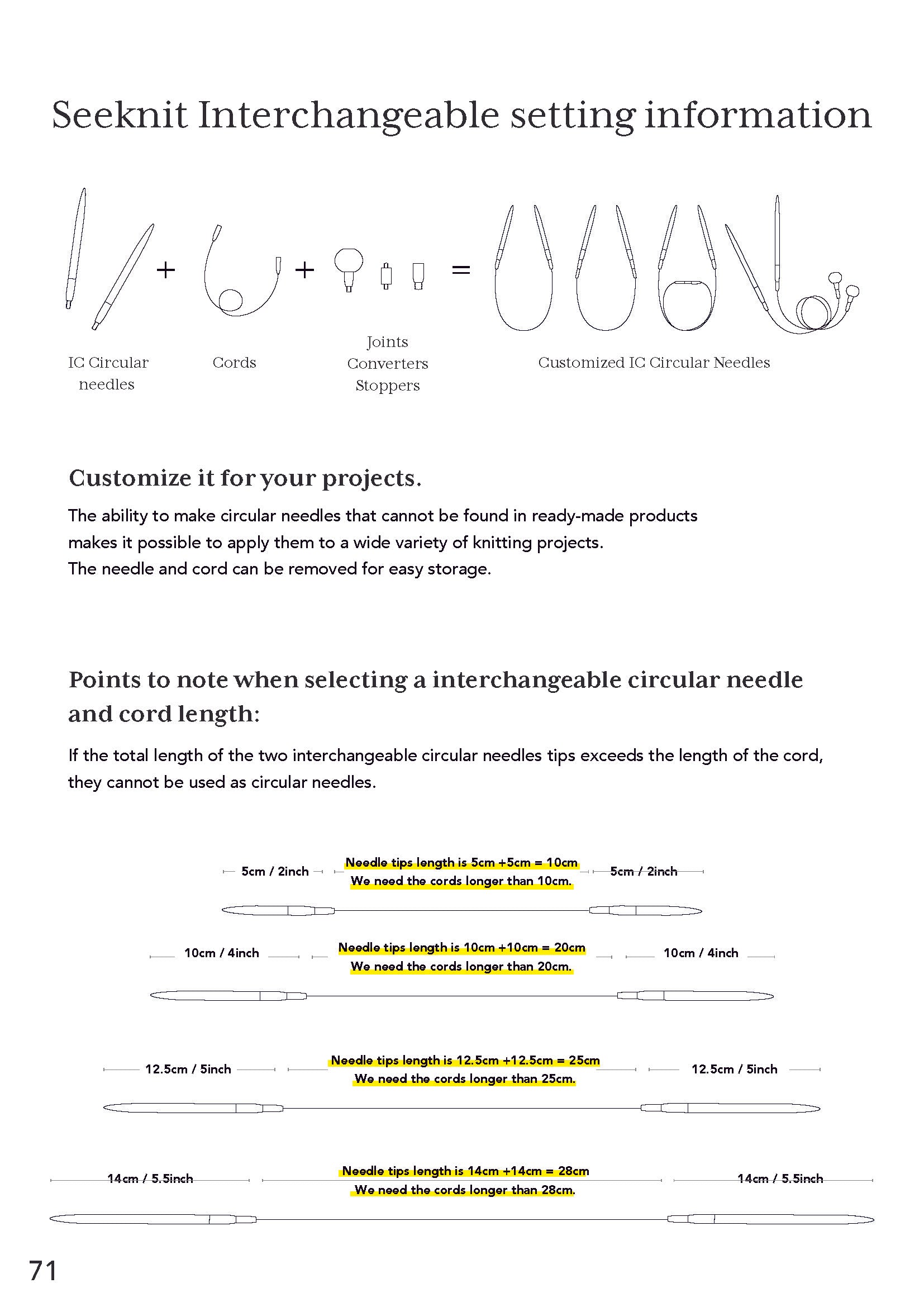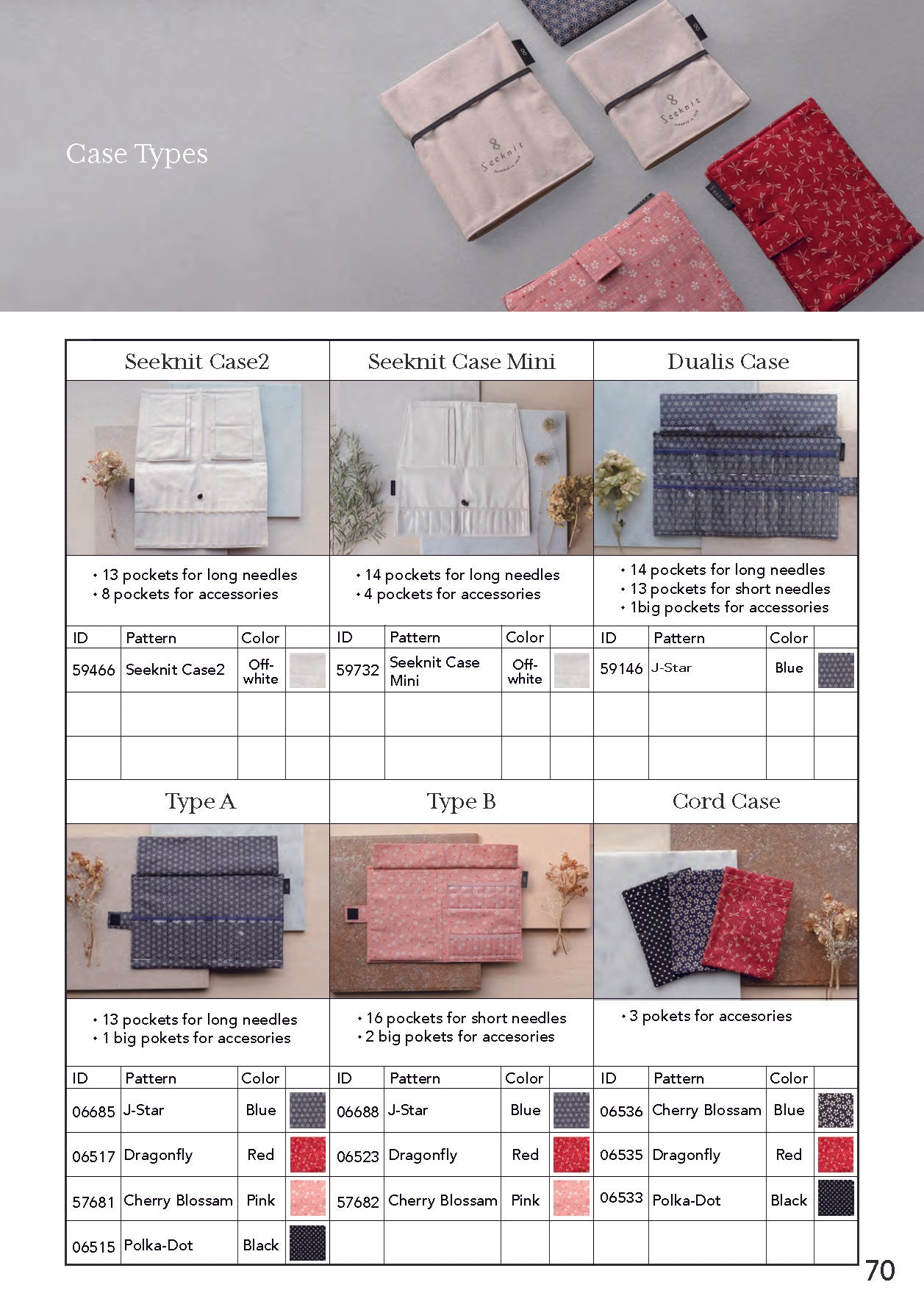 All kinds of needle tips, cords, cord joints, stoppers and fabric cases are available individually (see IC Parts page).You can customize your original set by yourself as you like.